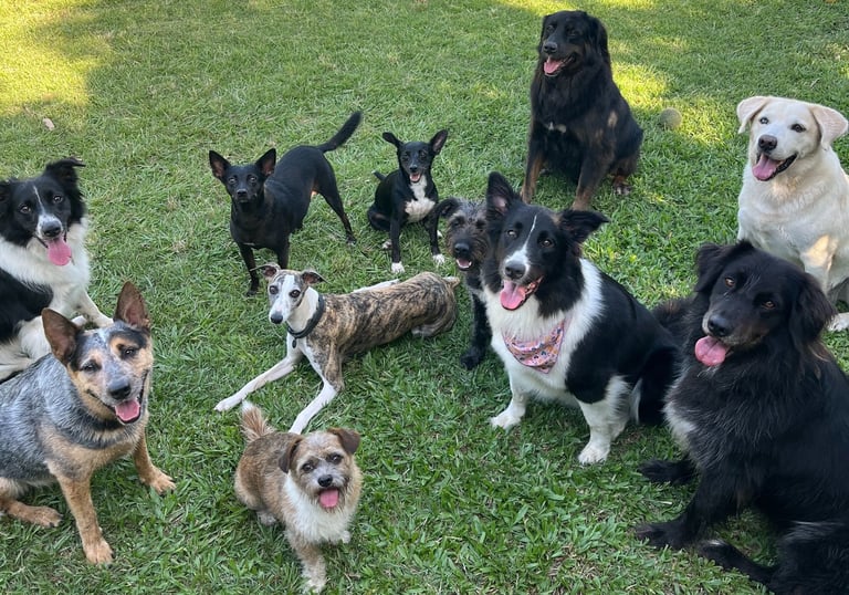 Os cães que frequentam a creche vivenciam uma rotina estruturada com comandos, autocontrole, previsibilidade e reforço positivo — sempre respeitando o tempo e o jeito de cada um.